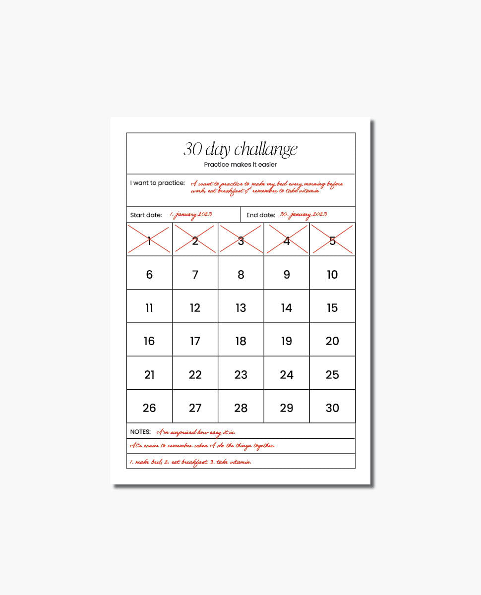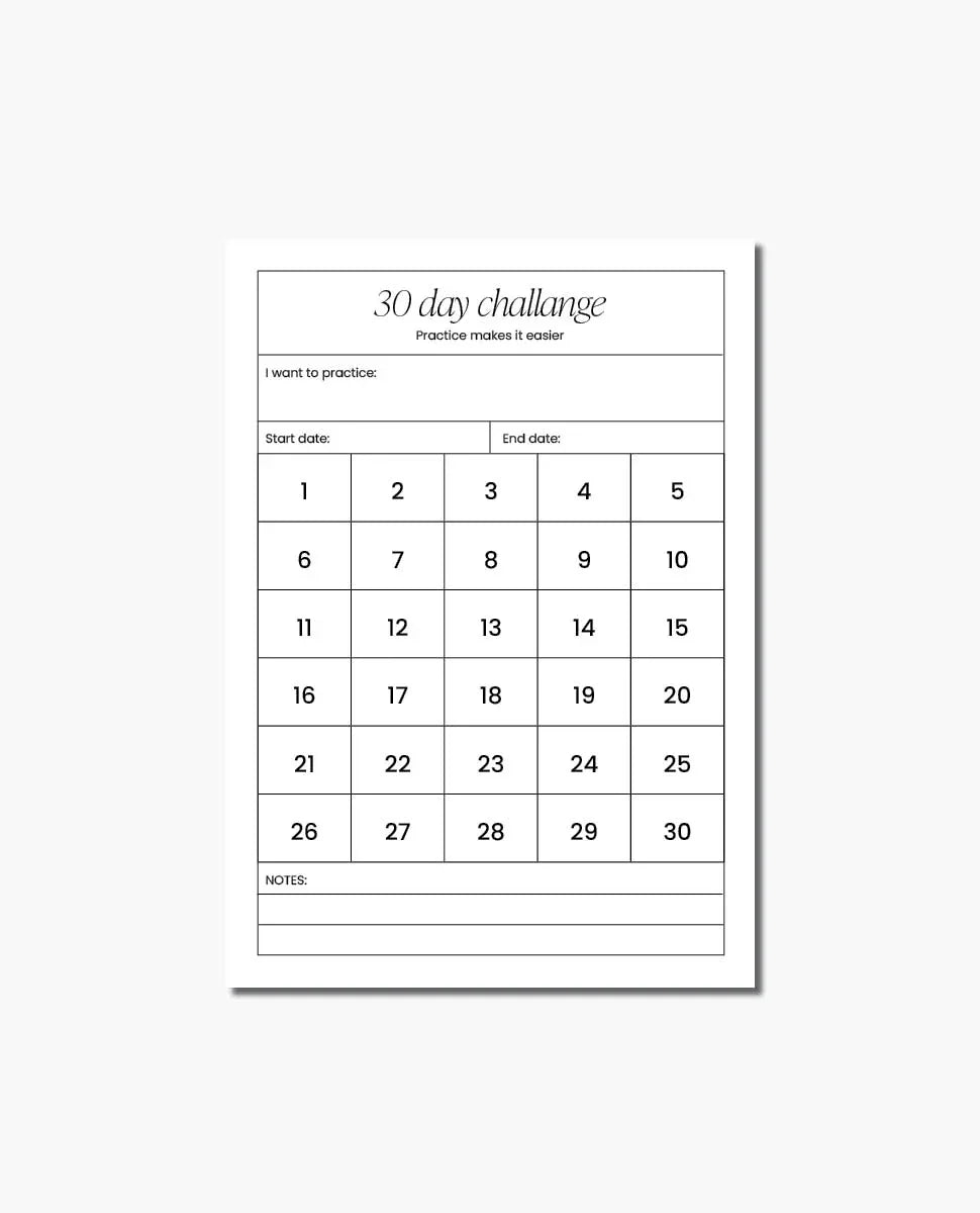 Det kan være svært at få nye vaner. Hvis du øver dig på det, bliver det nemmere med tiden. Brug denne printbar til at hjælpe dig med at spore dine nye måder eller vaner. Det printbare kan genbruges, og du kan lave lige så mange vaner eller udfordringer, som du vil.
