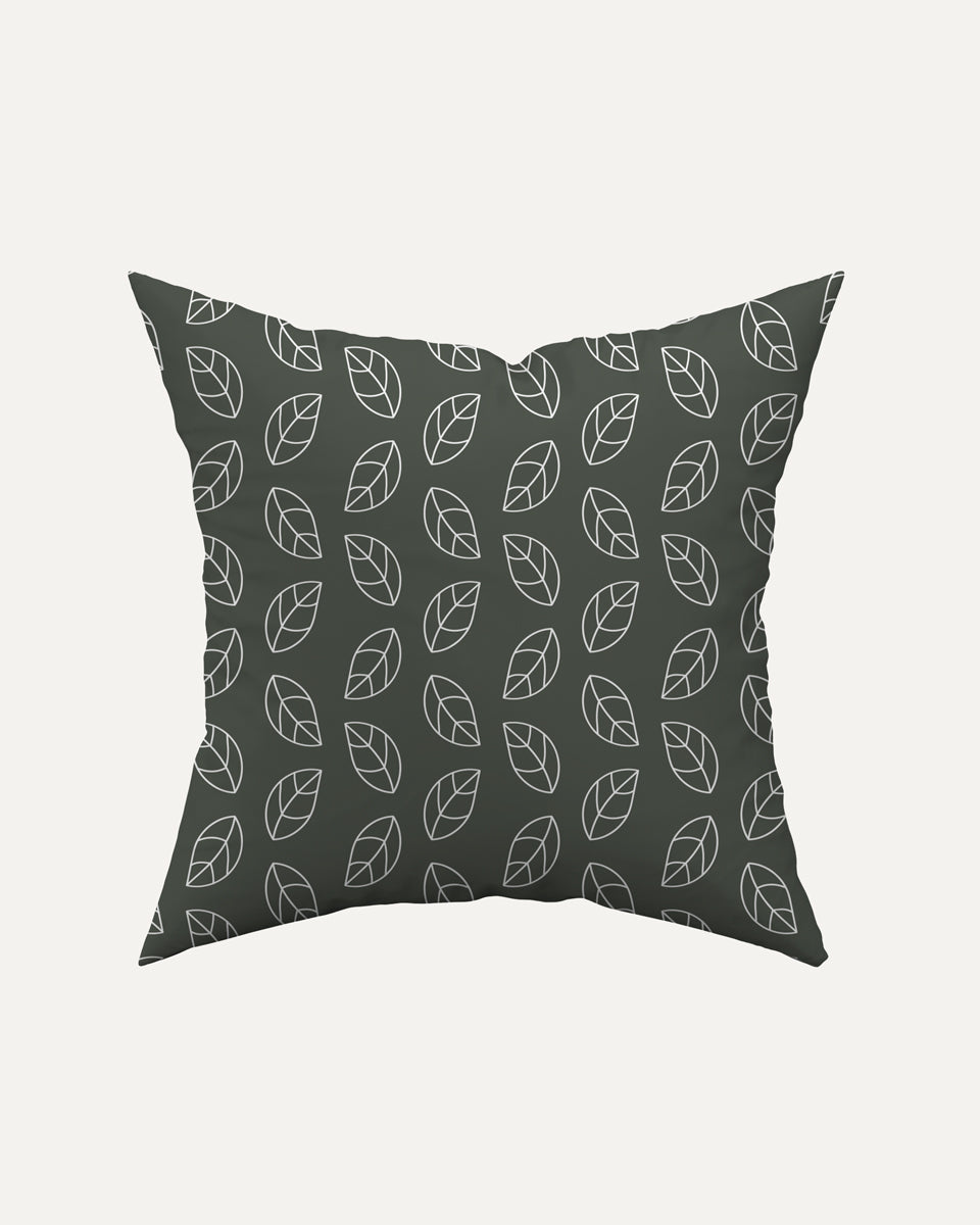 Naturligt look med bregnegrøn farve og bladmønster i hvid på. Indret dit hjem med jordfarvet pudebetræk.