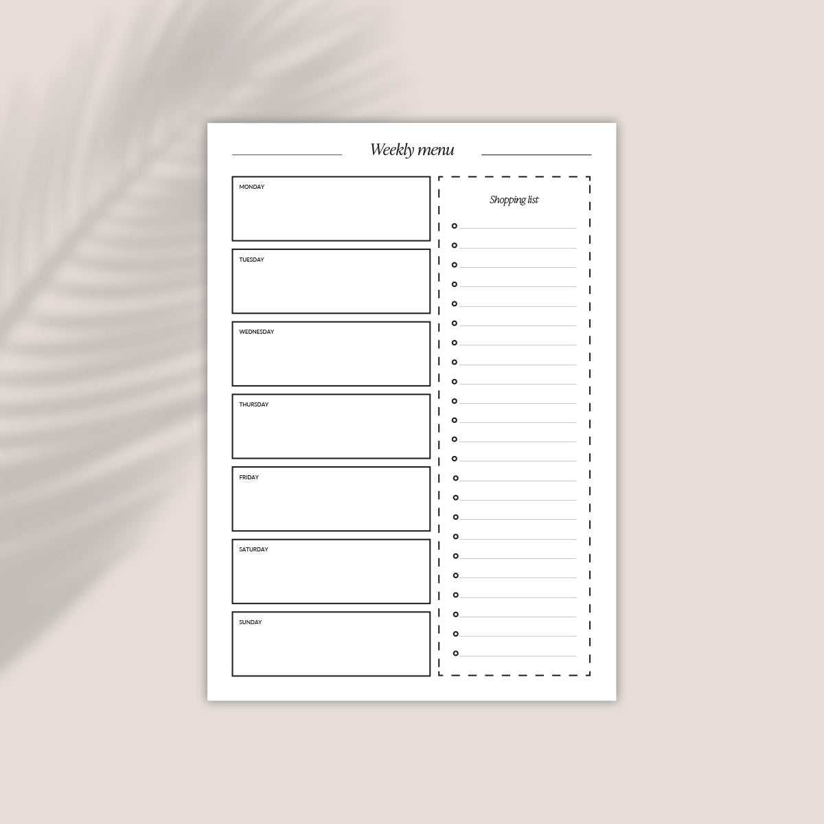 Are you the organised person? Do you make menu for the week? Then perhaps this clean and modern design meal planner just perfect for you. Our A4 instant download weekly meal planner is perfect to use every week of the year.