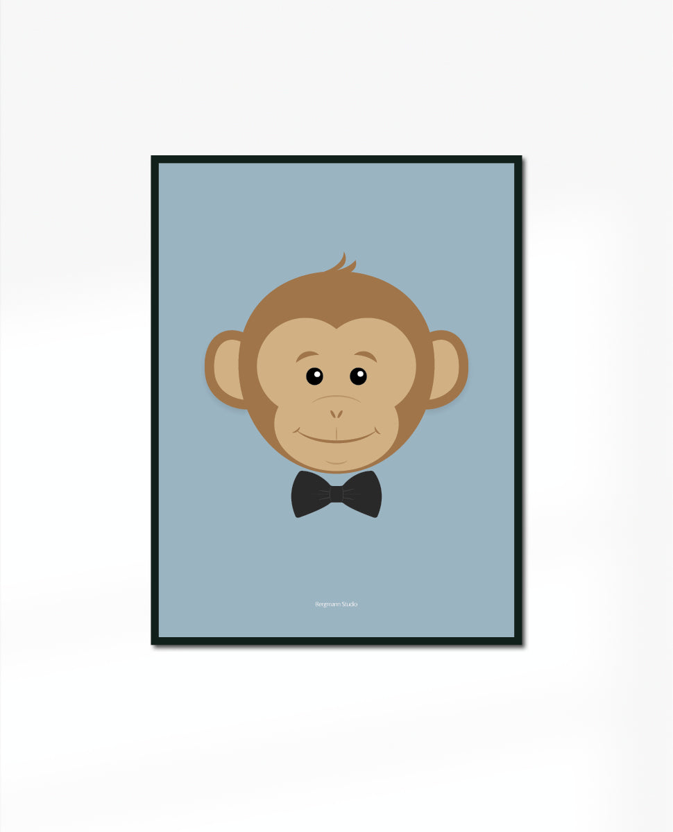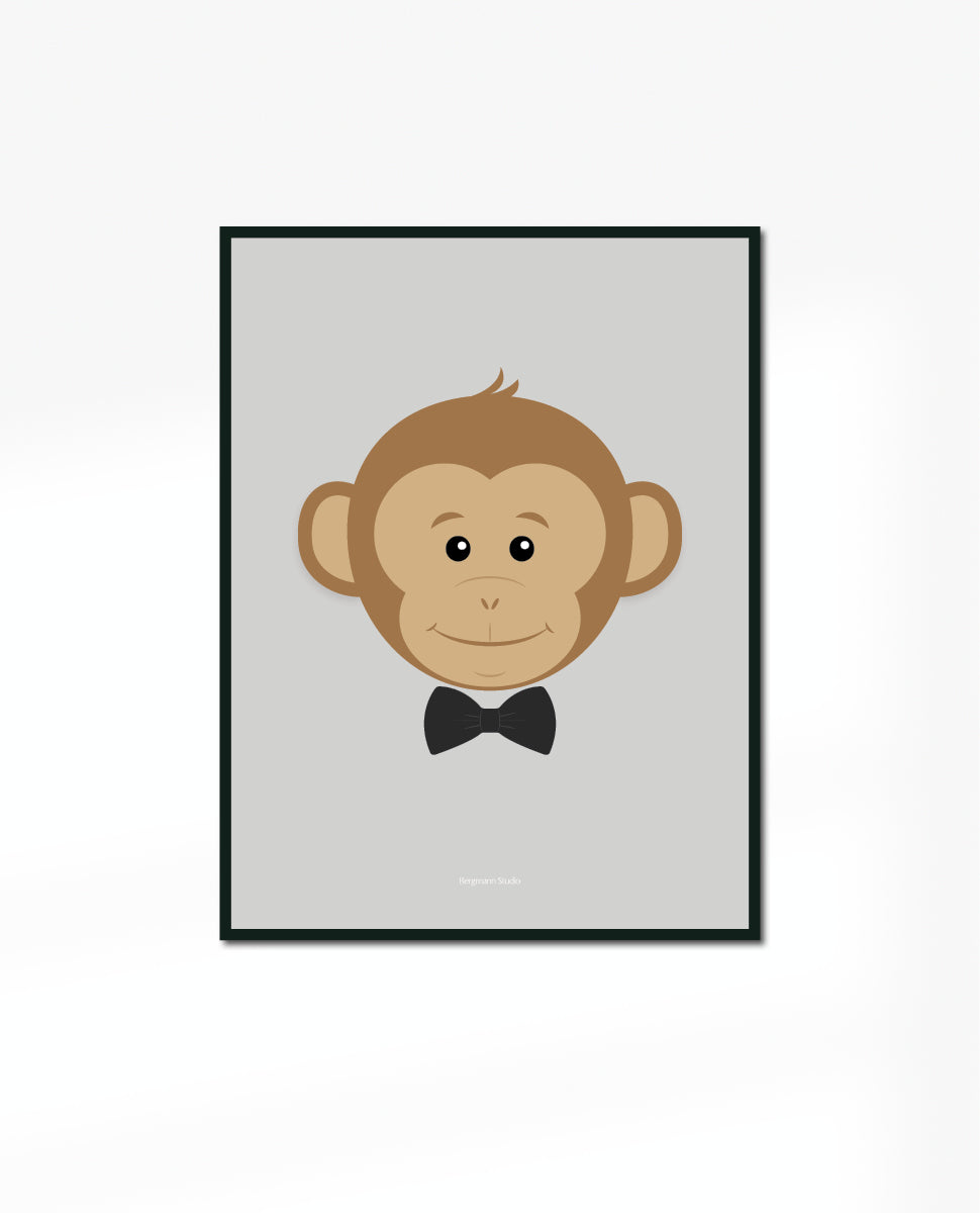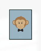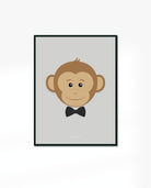 Adorable baby poster with monkey illustration on and it is available in two versions. One is with flower on left year and the other is with a bowtie. This illustration was designed for the Icelandic influencer Alesif and her Daughter.