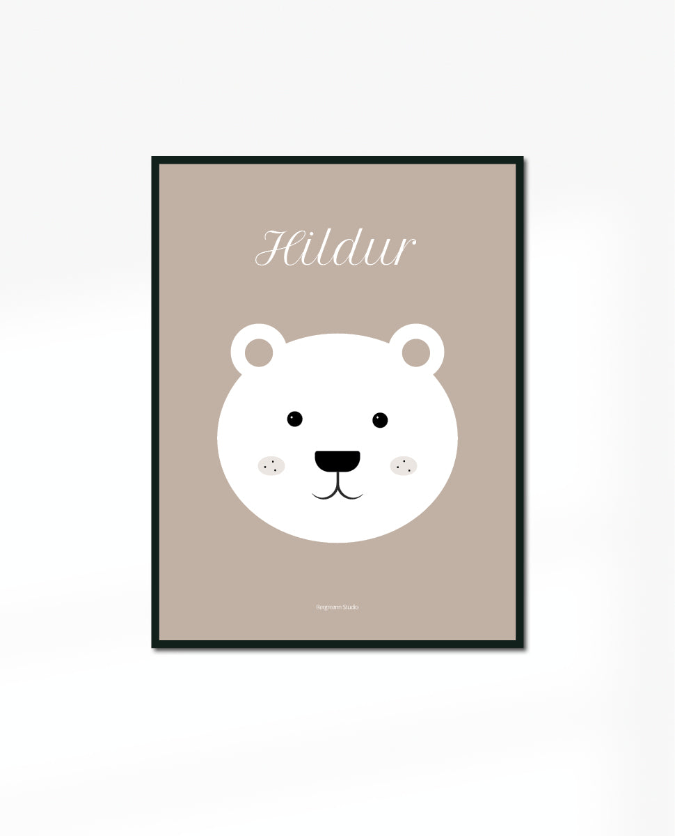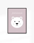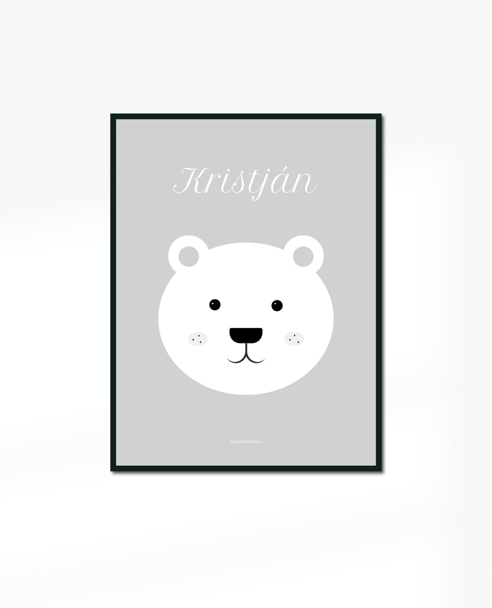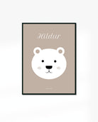 Adorable and modern baby poster with animal illustration of a polar bear. The design is available with name and birthday and in 4 different colors.
