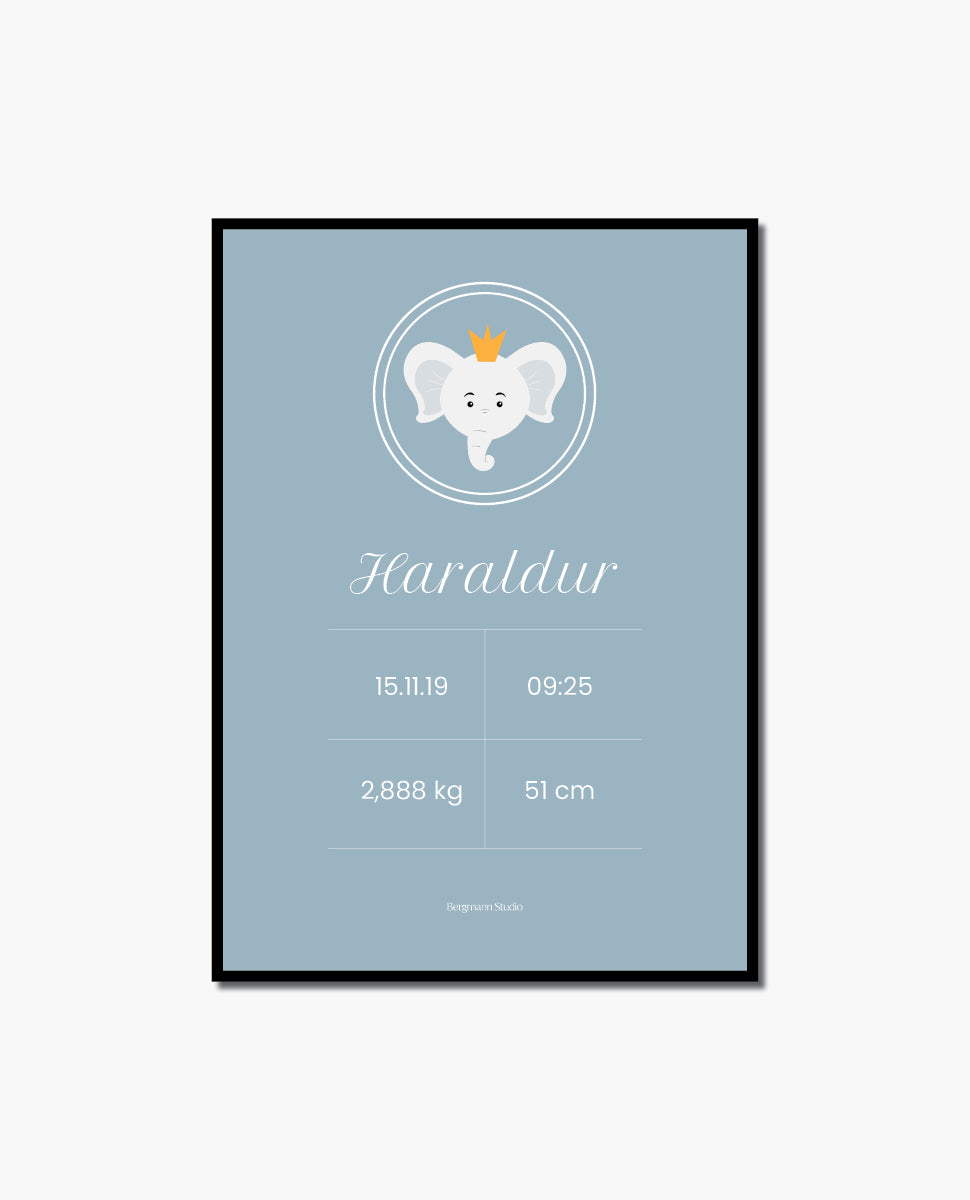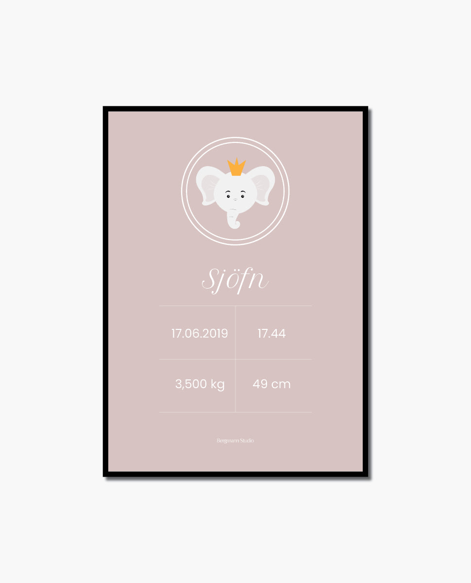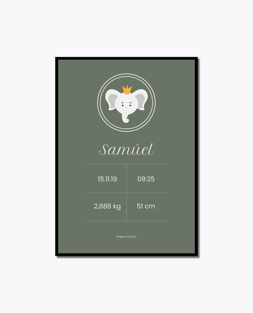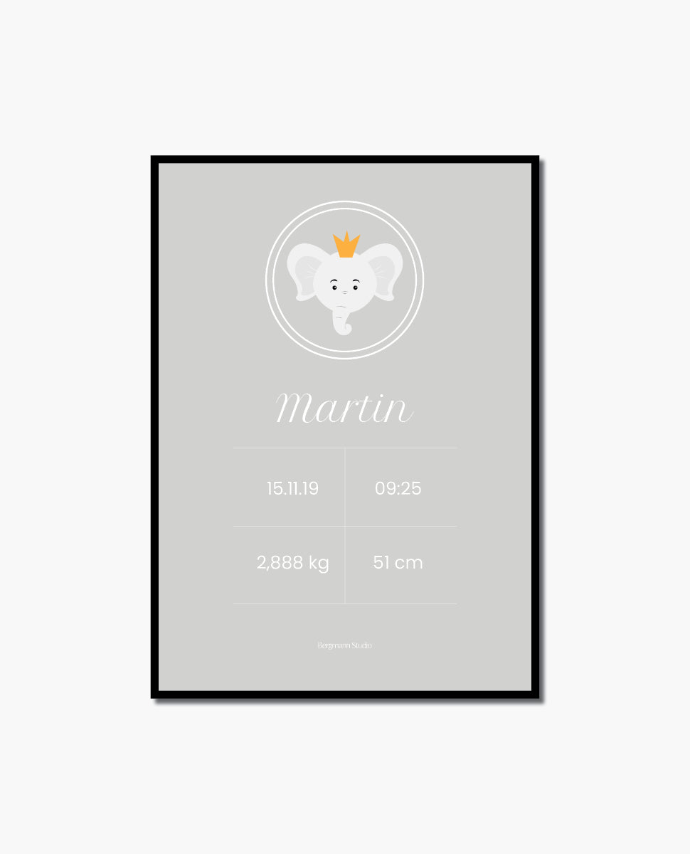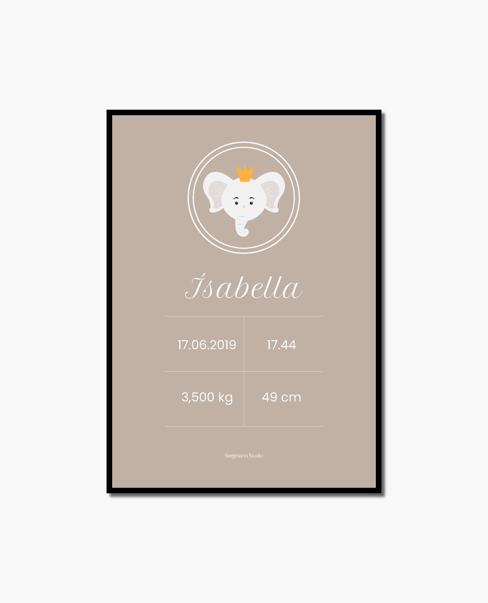Elephant with crown - Birth Poster