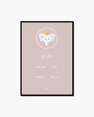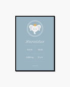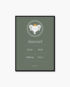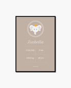 Cute elephant illustrated poster with birth information. The poster is available in few color setups.