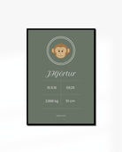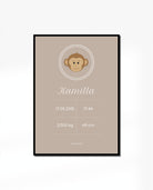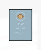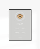 Modern & simple birth poster design with simple monkey illustration. This poster is ideal baptism present with the birth information that would be perfect to place it in the nursery or the baby's bedroom.