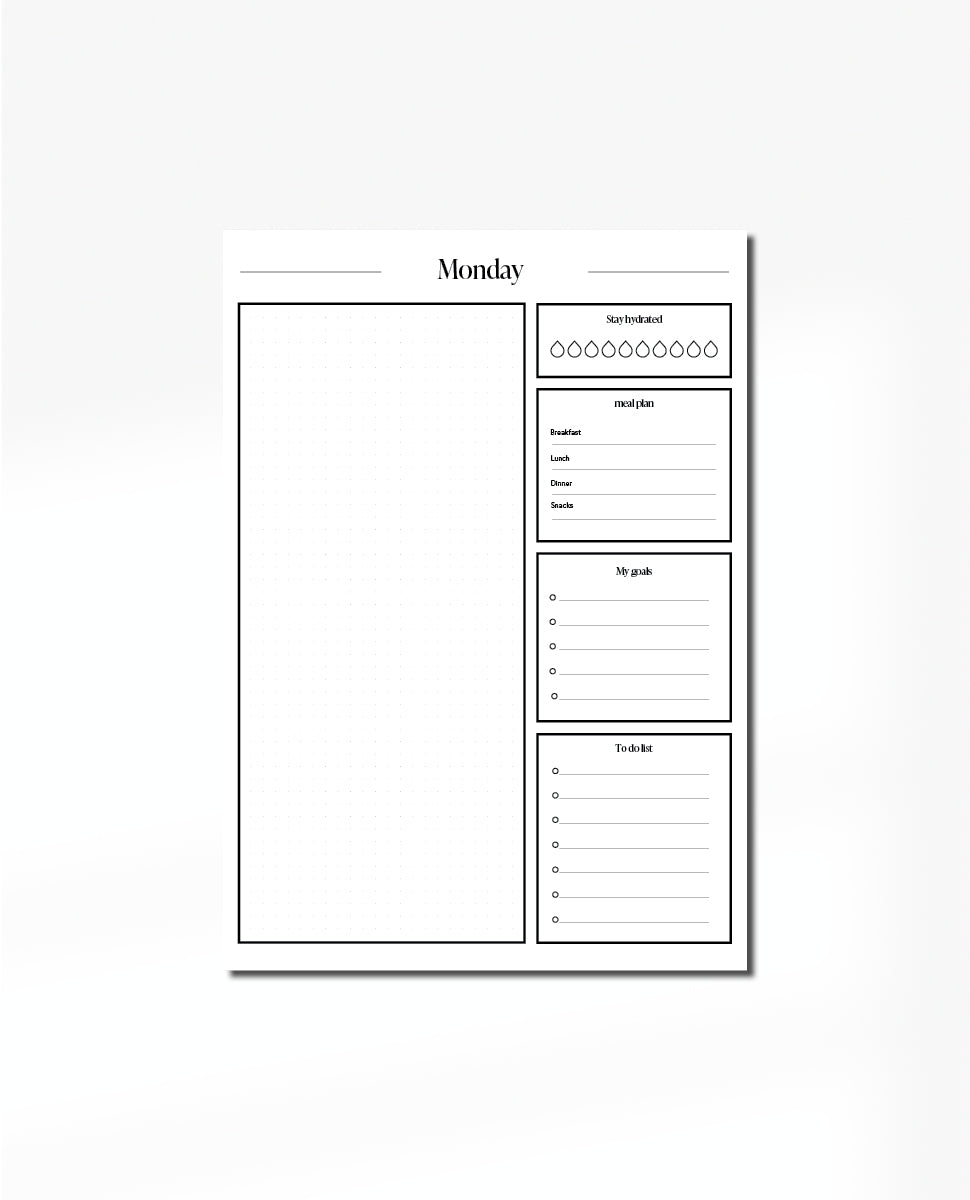 Let’s be organised together. We offer digital product of 7 day weekly plan that you can print from home. You can track how much you drink, make meal plan, write your to do list and other information to make your day more organised.