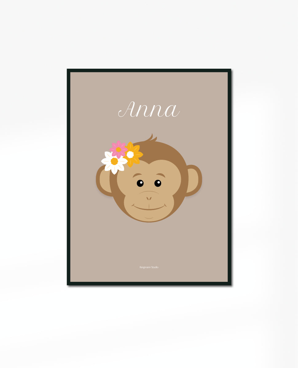Monkey with flowers - Baby Poster - Personalised