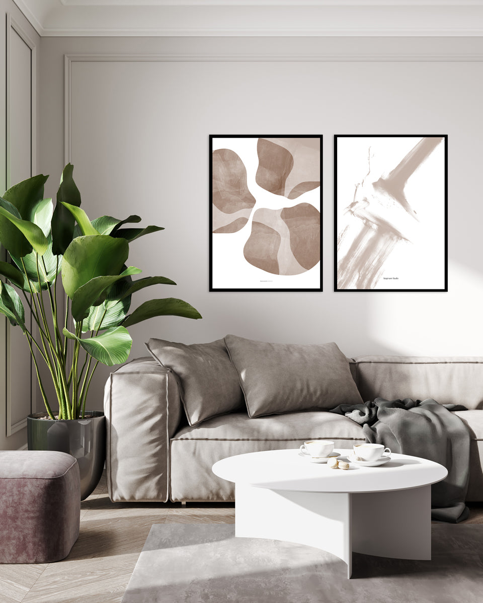 Soft shapes with brown shades for modern homes. The poster is ideal for the living room or bedroom. Decorate your home with beautiful poster with warm atmosphere